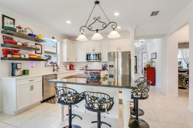 Edit mortgage details for a more accurate paymentWhy bother with the hassle of construction? Walk in to your new home, already equipped with all the desirable features and upgrades. Nestled on a premium lot, this meticulous Ellenwood Model 2-bed, 2-bath home with an additional flex room offers breathtaking views of the lake and a fenced in backyard. In addition, this ''smart'' waterfront villa boasts impact windows, advanced Wi-Fi connectivity, smart locks on both the front door and garage entries, and fully electric hurricane shades in the screened lanai. The well-lit open floor plan creates a sense of spaciousness and serenity, complemented by tasteful and cozy colors that appeal to a wide range of tastes. The kitchen is a focal point, featuring an expanded island and a five-burner natural gas stove for culinary enthusiasts. >>> Other upgrades include: guest bathroom with a shower, crown molding throughout, tray ceiling in the master bedroom, Hunter Douglas shades, garage shelving includes electric lift, overhead clothes airer (pulley system) in laundry room, 2 car garage, and so much more. *There is NO carpet in the home*.With its contemporary elegance and stylish design, complemented by its prime location, this villa truly offers everything one could desire. Numerous shopping and dining opportunities nearby cater to a variety of tastes.Tradition presents itself as a meticulously planned community sprawling across 300 acres of verdant landscapes. Its offerings boast a wide array of open amenities, featuring a swimming pool, hot tub, cutting-edge fitness center, clubhouse, as well as pickleball, tennis, and bocce courts. Complementing the main amenity center, a soon-to-be-opened putting green adds to the recreational allure, while ongoing construction of a secondary social hall promises an extra pool for residents' enjoyment.