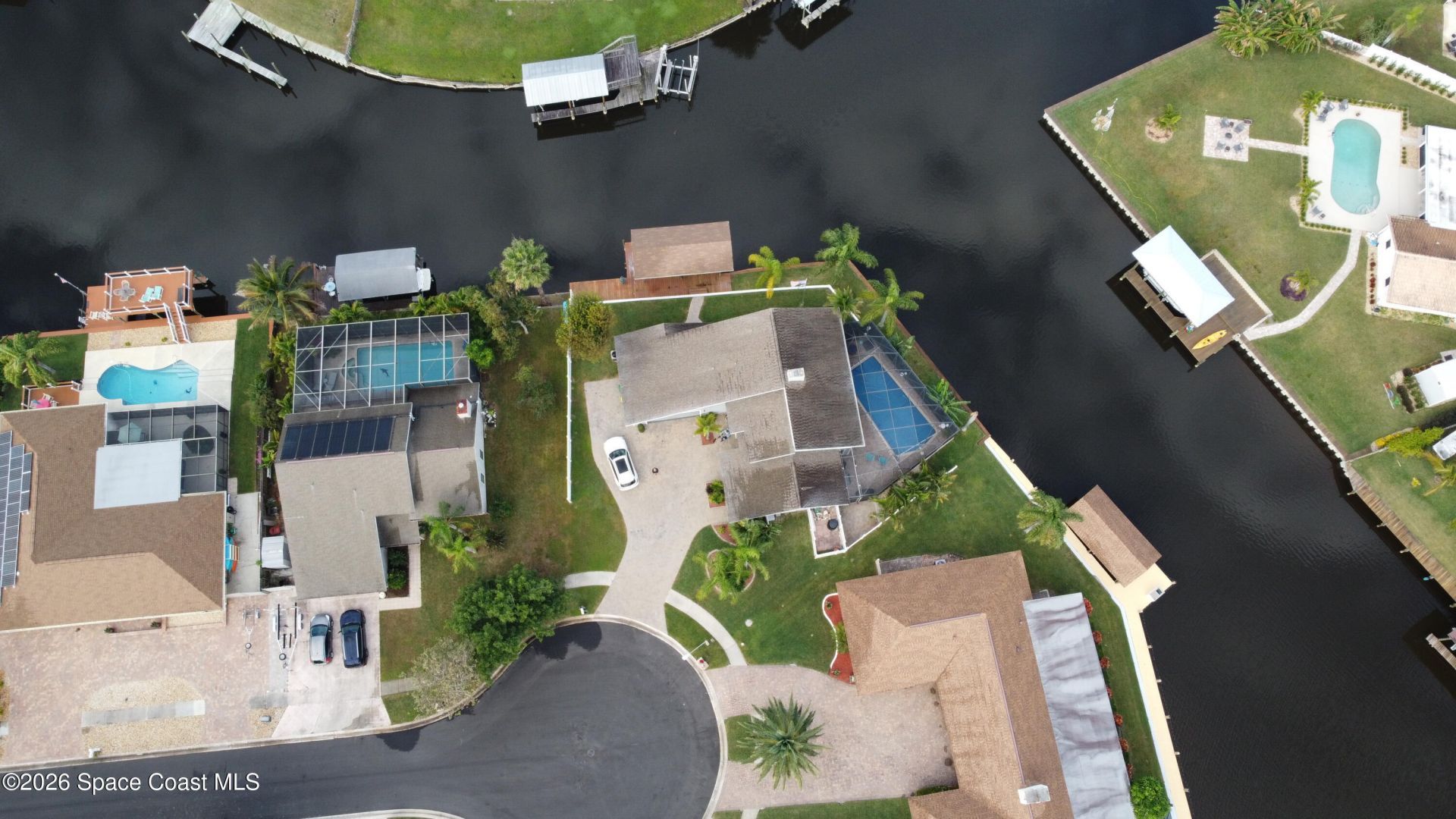 MOVE-IN READY with breath-taking 200+ degree views of the canal, pool & open sky! This updated modern home is truly the place to Live the Florida Coast Lifestyle everyday! The bright and airy interior features modern upscale finishes and fixtures throughout, a spacious and open floor plan, a private 2nd floor Master suite with its own balcony, and a living room boasting a 25-foot ceiling and stunning view of the pool and canal. Natural daylight fills the home all day, while at night, LED accent ...MOVE-IN READY with breath-taking 200+ degree views of the canal, pool & open sky! This updated modern home is truly the place to Live the Florida Coast Lifestyle everyday! The bright and airy interior features modern upscale finishes and fixtures throughout, a spacious and open floor plan, a private 2nd floor Master suite with its own balcony, and a living room boasting a 25-foot ceiling and stunning view of the pool and canal. Natural daylight fills the home all day, while at night, LED accent lights dramatically illuminate the homes interior and exterior architectural charm. The large, screened pool area provides a cozy yet spacious setting for gathering with loved ones or grilling for party guests; Plus a large motorized awning for shade. The covered boat dock and lift are ideally located just steps away along the 154-foot seawall. This homes central Brevard county location makes it just short drive to Kennedy Space Center or Orlando for work, air travel and entertainment
