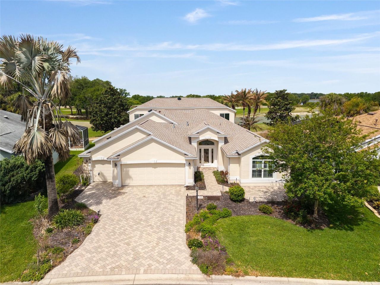 REDUCED $114,00 from original list price! ONE OF A KIND IN SUNSET POINTE! Located on HERON GOLF COURSE with WIDE OPEN VIEWS of the lake, golfers and wildlife on Heron Golf Course, plus FANTASTIC SUNSET VIEWS over LAKE MIONA. BOND IS PAID! 3,180 sq ft CUSTOM LANTANA with 2025 ROOF and 2024 HVAC The improvements start at the front of the property with pavers on the driveway and front walkway as well as the added front patio, perfect for an umbrella table or seating group. A beautiful STAINED GL...REDUCED $114,00 from original list price! ONE OF A KIND IN SUNSET POINTE! Located on HERON GOLF COURSE with WIDE OPEN VIEWS of the lake, golfers and wildlife on Heron Golf Course, plus FANTASTIC SUNSET VIEWS over LAKE MIONA. BOND IS PAID! 3,180 sq ft CUSTOM LANTANA with 2025 ROOF and 2024 HVAC The improvements start at the front of the property with pavers on the driveway and front walkway as well as the added front patio, perfect for an umbrella table or seating group. A beautiful STAINED GLASS FRONT DOOR with sidelights and radius transom welcomes you into the foyer with IMMEDIATE VIEWS to the golf course and lake. /the Living and Dining areas are open to the Kitchen and Breakfast area, all of which have DIRECT SLIDING DOOR ACCESS TO THE LANAI/POOL/PATIO for EASE OF ENTERTAINING and every day living. New LVP flooring is installed through the living and dining areas as well as the primary suite and guest wing. The kitchen, breakfast area and laundry room are tiled. All of these areas have new 5 1/4 baseboards plus new interior paint including walls, doors and trim. The Primary Suite with golf and water views has ensuite bath, walk in closet, double vanities, walk in shower, lighted ceiling fans and multiple windows in bedroom and bath for great natural light. The GUEST WING includes TWO LARGE GUEST ROOMS with ceiling fans and closets, a hall linen closet and a GUEST BATH with tub/shower combination. The INSIDE LAUNDRY ROOM has additional storage. A 450 sq ft first floor BONUS ROOM / IN LAW SUITE with FULL BATH has private access from garage, side of house and lanai. In addition, this room has water and gas connections making it ideal for In Law Suite, craft room and more! A second story 700 sq ft air conditioned LOFT was once an Art Gallery and is a blank slate for your game room, gym/work out room, additional living room/den, etc. With WINDOWS ALL AROUND offering PANORAMIC VIEWS, this great space completes the interior of the home. The EXPANSIVE SCREENED PATIO which includes a JETTED POOL & SPA and COVERED LANAI provides an additional 1,100+ SQ FT OF OUTDOOR LIVING SPACE! . The home has natural gas for heating and cooking, plantation shutters and a whole house vacuum system. An oversized two car garage with golf cart garage has fresh paint on the walls and the floor is newly refinished by Garage Flooring Pros. This property is ideally located minutes from Lake Sumter Landing and halfway between Spanish Springs and Brownwood Paddock Square. Five photos are virtually staged. The golf course renovation is progressing nicely and it is green again! Work is scheduled to be completed within the next few months. COMING SOON - New exterior photos and drone video showing the now GREEN GOLF COURSE!
