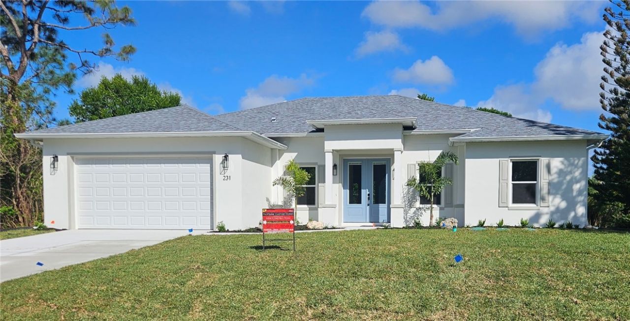 Brand new 3 bedroom and office, 2 bath residence features premium finishes, thoughtful design, and an inviting open floor plan for both comfort and style. Spacious living area with volume ceilings, impact windows and doors, granite counters, wood cabinetry, and luxury finishes thru-out. The split floor plan offers privacy for the primary suite with stunning bath and walk-in closet. Covered Lanai overlooking the peaceful canal perfect for relaxing, fishing or just taking in the breeze. Oversized...Brand new 3 bedroom and office, 2 bath residence features premium finishes, thoughtful design, and an inviting open floor plan for both comfort and style. Spacious living area with volume ceilings, impact windows and doors, granite counters, wood cabinetry, and luxury finishes thru-out. The split floor plan offers privacy for the primary suite with stunning bath and walk-in closet. Covered Lanai overlooking the peaceful canal perfect for relaxing, fishing or just taking in the breeze. Oversized 2 car garage and energy efficient construction and insulation also St Augustine sod and irrigation.