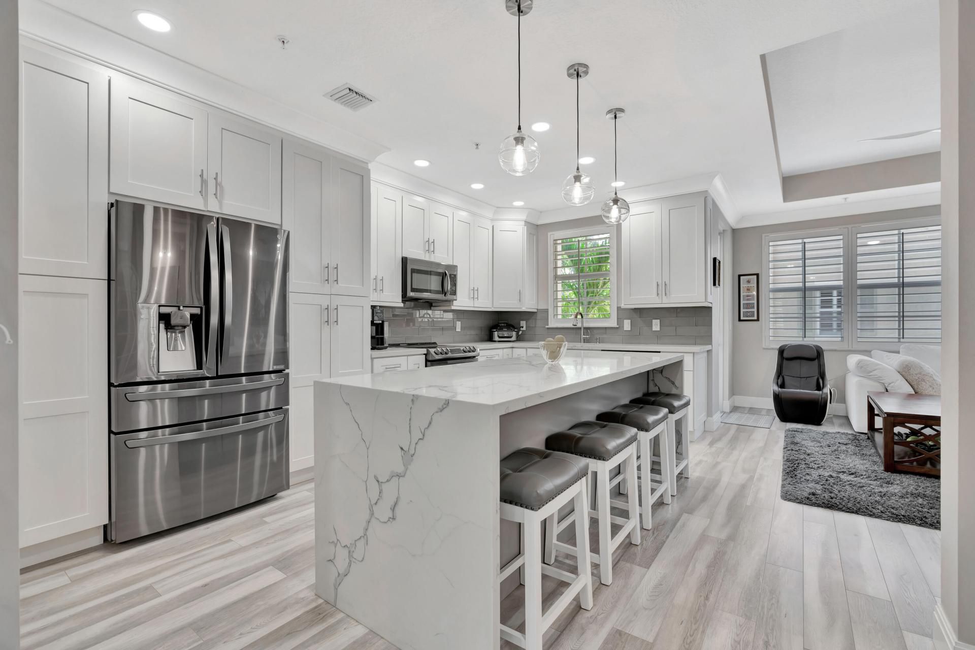 Edit mortgage details for a more accurate paymentThis stunning, completely renovated 3-story townhouse is truly one-of-a-kind and located in the prime spot of the development. Boasting 3 bedrooms, a den/office (which could easily serve as a 4th bedroom with an en-suite bath) and 3.5 bathrooms, this home also features a spacious 2-car garage. Situated as an end unit, this Barcelona model offers exceptional privacy and panoramic lake views. The interior showcases exquisite laminate wood flooring throughout, adding warmth and elegance to every room. The updated kitchen is a chef's dream, with beautiful quartz countertops, a large island, and crisp white shaker cabinetry. The open living and dining areas seamlessly flow together, creating a spacious and inviting environment perfect for both everyday living and entertaining guests. The home also features custom wardrobe spaces, recessed lighting, tray ceilings, and plantation shutters that enhance the overall aesthetic.Relax on the covered balcony while enjoying the serene surroundings or take a short walk across to the community pool and clubhouse. Additional highlights include ceiling fans, a front-load washer and dryer, and the security and privacy of a gated community. Residents also enjoy access to a fitness center, community pool, playground and clubhouse, making this home the perfect blend of luxury and convenience.